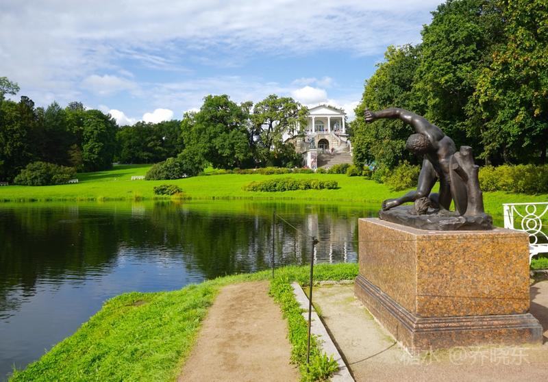 叶卡捷琳娜花园始建于1704年,历经几个朝代扩建,至叶卡捷琳娜女皇登基,已初具规模,后由建筑师卡梅隆,依照古典主义风格对宫殿及园林进行改建,最终形成了巴洛克式宫殿与英式花园完美结合的著名园林。