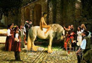 据说在1040年,统治考文垂的Leofric伯爵为筹军费,决定征收重税。