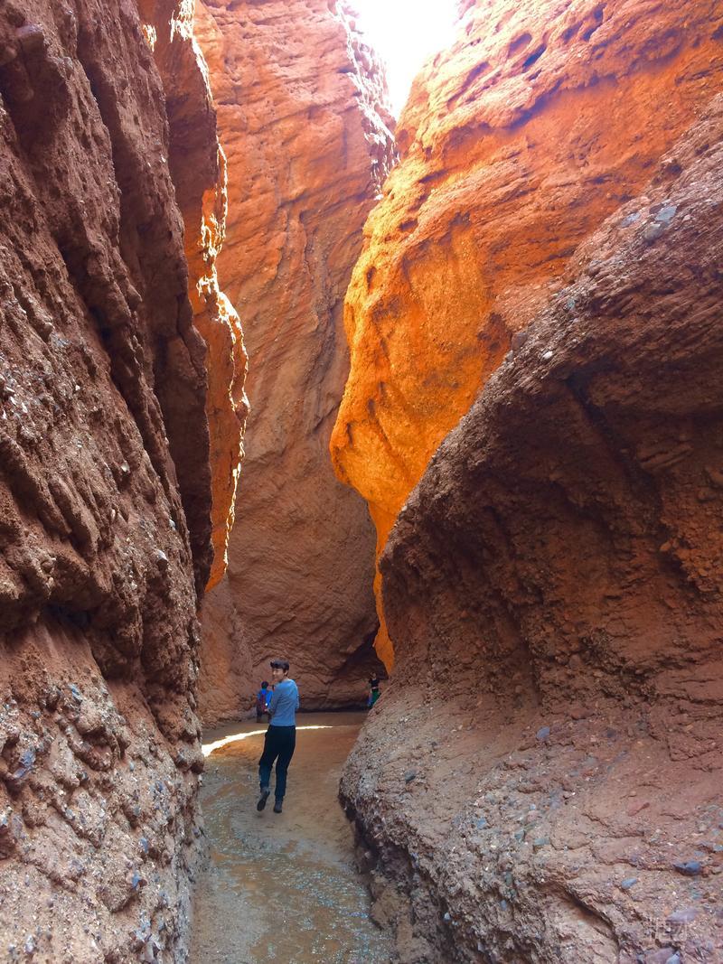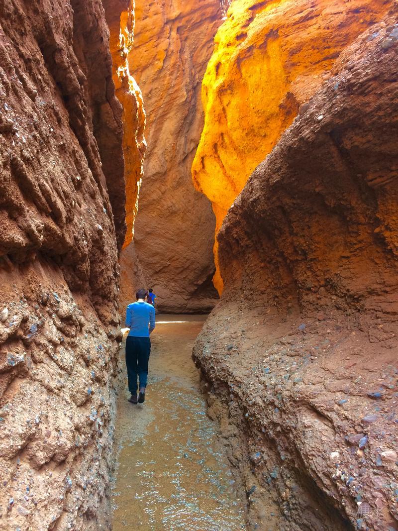 中国最美十大峡谷之一天山神秘大峡谷 天山神秘大峡谷地处天山山脉南麓,新疆库车县城以北64公里的山区,位于217国道1025.8公里处北侧,海拔1600米,最高山峰2048米。大峡谷由红褐色的巨在山体群组成,当地人们称之为克孜利亚(维吾尔语意“红色的山崖”),峡谷南北走向,末端稍向东弯曲,全长5000多米,经亿万年的风雨剥蚀,山洪冲刷而成,是我国罕见的自然风景奇观。走进天山神秘大峡谷,谷内山体陡峻,悬崖绝壁,奇峰异石,千态万状。峡谷随山势变化,忽而宽阔,忽而细狭,最宽处53米,最窄处0.4米,仅容一人侧身而过。