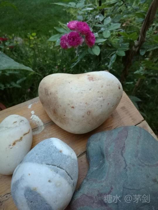 橡树《山居笔记》之《闲居——石之趣》 小时候,老屋前隔几根稻田就是一条小河。那时没有自来水、没有电、没有洗衣机,因此,全村人的衣被,都得到小河去洗。每次下河洗衣,总喜欢捡两个乖巧的小白石,梦想着它是一粒传说中的夜明珠,若将它放进米缸、油坛,四季便有吃不完的粮油,那多好呀!可是,无论我将它放在哪里,它都依然只是一粒石子,并无一点神力,唯一的用处,就是用它悄悄与小伙伴玩玩抓子的游戏,间或在水塘边打个水漂什么的。后来长大了,离小河远了,生活也忙了,住进城市的高楼,便与石头绝了缘。直到搬入山居,不但得了园,也得了闲,于是石头与我,竟又续了前缘。 想起《红楼梦》里的木石前缘,在园艺配置上,倒实在是很相宜。我因之前得了几个水红树的老桩立在花园一角,想来想去,唯有铺以卵石相配,方能有那微山水的感觉。“得天独厚”于攀枝花,原以为只是因了钒钛矿藏,并不太以为然。直到在这里生活久了,你就会发现,无论你有什么想法与创意,它都不会辜负你。虽是城市,要想寻得一些光滑的卵石,只需抬脚往金沙江边一走,任你圆的、扁的、白的、灰的,随你力气搬运。 当然,山居的任何大一点的行动,都离不开老严和他的皮卡车。这不,听说我们要去江边捡石头,二话不说,拉着我们直奔金江对面的江滩,不到两小时,大大小小的石头,便将皮卡车斗装得满满荡荡。回家搬入花园,将卵石铺在花园一角,几个大的,被随意摆放其间,小小园子颜值大增。 这一地卵石,不但美了花园,在相当长一段时间,又成了我的淘宝之地。比如手边这个白色的大鹅卵石,下部是秋草一片,中有河流穿过,一只高飞的大雁,正朝着远方的故乡,向南!向南!而褐黄与脂白相间的一粒石子,无论形态、大小,都恰似一枚好看的菩提。另一个石头里是不是藏了一个孙猴子,这次大概想换个形象出现,于是,一只萌萌的鸟头,从青灰色的石里破壳而出,用月牙形的眼,静静打量着这个世界。也有一个小指大小似玉坠的,灰黑的石面上,生着一圈圈白浪逐沙的纹饰,只需打一小孔,便可挂在胸前了。如此种种,不足而论,于是家里的案上、几上、柜台、花器、抽屉……到处都有了石头的影子。 朋友知我喜欢,有时也邀去金沙江边捡石头。在金江下游段一个叫做迤之的地方,这一段的石头与别处最大的不同,无论大小,其材质都非常细腻油润,以手抚之,有玉的质感。半天找寻,同伴们有以图像取胜的、有以形状取胜的、有以色彩取胜的,而我虽无特别的收获,但一个含草化石,已令我不虚此行。在这块棕黑色拳头大小的石上,密密布满了灿若金丝的草纹!我不知这些草当年修了什么行,在它同伴都了无踪迹之后,它却在一块石头里得到了永生,永生并美丽成箕、锣、流云的图案,并以此作为独特的身份证明。也有两个颜色颇鲜的。那颗小如拇指、状若鸡心的石子,亮了我的眼睛很久。它上部顶一头鲜亮如血的红,下部笼一袭青灰的纱,隐隐的红从中透出,那诱人的模样,大概不输一颗玛瑙吧?另一盈手可握的小件更是天生丽质,通体柠檬黄的石身上,若隐若现透出几缕淡青,一些大如米粒、小如菜籽的红色圆点,似星星、似梅花散布全身,盈手相握,把玩不厌。 后来外出旅行,石头也成了旅行箱增重的原因。在冰岛维克镇的黑沙滩,看到那蜂窝状的黑色小卵石,想它小小的身体,曾经怎样在水与火之中历经煎熬,直到光滑的颜面,被烧结成一张麻脸。另一颗它的同伴,也许属于乐观幽默型。当火山炽热的岩浆袭来时,它却想着用它为自己纹一纹身,以此作为对火山喷发的纪念。于是,在它灰白的身体上,我不但看到了一只可爱的羊驼,就连皮毛,也染上了岩浆的暖色。在斯里兰卡的美瑞莎,有一种小如鸽卵的半透明石子,也是特别的可爱,捡回两枚,置于鸟巢,竟蒙过好多人的眼。 爱上石头,也爱上石器。虽然对小时候家中的石缸、石盆很是怀念,但毕竟山高路远,只能留在记忆里回味,但山居花园若没有一件老的石器,心里总是无法释然。于是,辗转托朋友在大凉山乡村寻找,果然有了。几个小石缸虽然模样不算周正,但那红砂石的材质、半月圆的形状、人工打凿的纹理,无不显出自然、古朴的韵味。特别是缸沿上凹陷如新月的磨刀痕,更是年深月久的印证,没有几十上百年的功夫,想必是无法留下那样深的磨痕的。缸壁外的两团苔藓,一青一黄,年检印章样,记录着小石缸的历史。盛一缸清水,置几方小石,养几株水草,游几尾红鲤,看它们与天光云影同乐,我心亦乐。一副石磨,终于摆脱了相互折磨的命运,架于缸上,看清水从石磨涓涓流下,逗鱼追逐嬉戏,我心亦喜。 有时学着涂鸦,石头又是极好的画材。画几只红红黄黄的瓢虫,将它们置于花盆、草地,也平添一丝意趣。自己亲手画的石头,虽不是什么上得了台面的艺术品,但用来装饰家,每天看着,自有一份亲切在里边。聪明的你,动手吧!