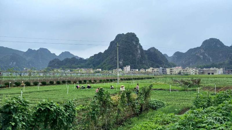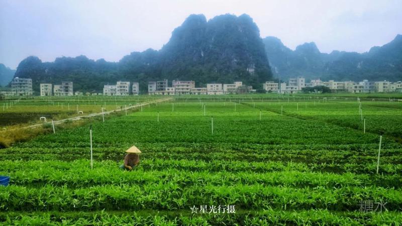 入秋后苹塘镇良官村,一排排统一风格的洋房整齐有致,交错相通的硬底化村道和连片绿油油的大棚蔬菜在姿态各异的原生态峰林的映衬下,宛如一幅绝美的田园画卷,美如桂林山水。
