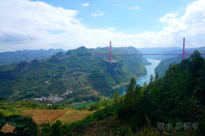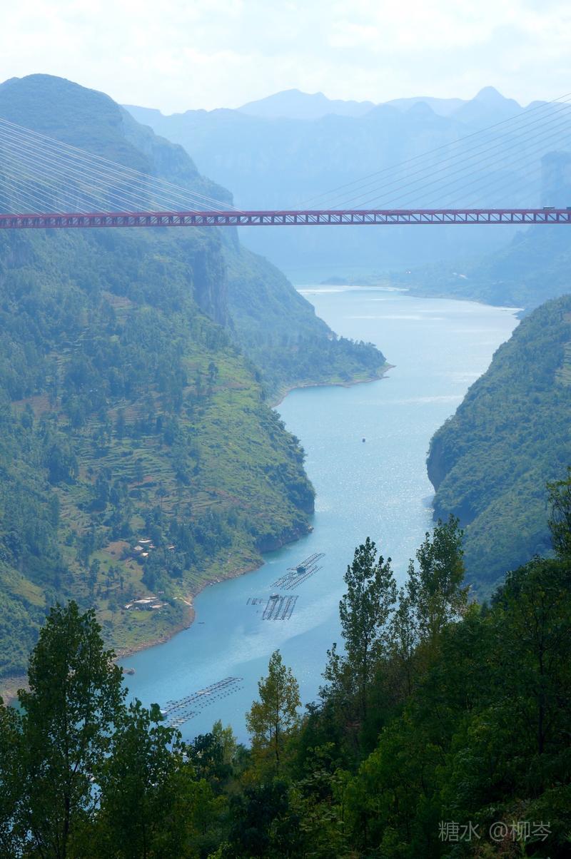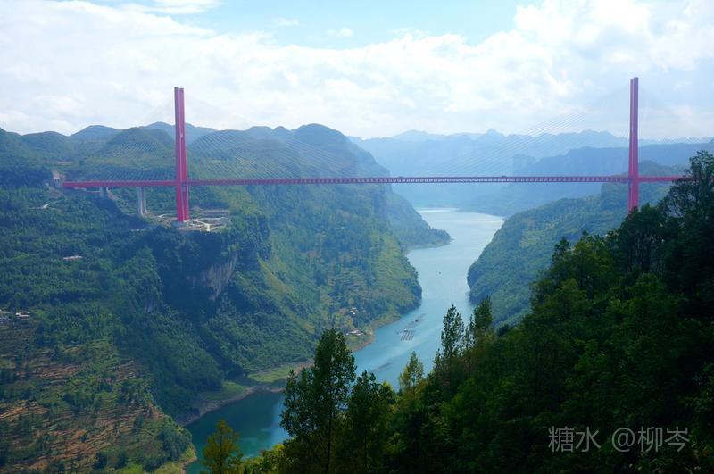 这是2016年建的最美贵州桥---新鸭池河大桥。 该大桥是贵黔高速上最大的一座桥,主跨长达800米,全长1450米,宽28米,高度434米,是世界上最大跨径的钢桁梁斜拉桥,也是世界上山区斜拉桥之最。高度目前排名世界第五位!