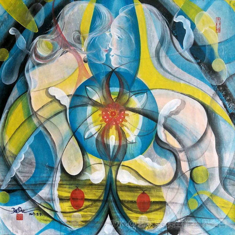 品读实力派抽象艺术家陈胜祥彩墨作品 《少女》系列“心灵告白"随想 抽象艺术是画家用思维和情感通过立体的构图,加上流畅的色彩线条组成的一幅幅艺术美学语言。 每次当我欣赏到陈胜祥先生发来的新作品时,我的大脑里会突然蹦出两个字“联想”,在享受作品带来的美感中产生种种联想。当然,我的联想是在自由的,飘忽不定的意境里产生一系列的情与景交融,其后,画面里隐藏的人物、风景都活灵活现的在视觉里灵动变幻,唤醒美学与诗意的想象,或许这就是被誉称“东方抽象艺术之美”陈胜祥先生艺术的魅力所在。 陈胜祥先生新作《心灵告白》,我反复品读,仔细领会画面内容,迟迟不敢动笔。画面以清新淡雅的色彩表现出作品丰满的内容,留白的部分呈现出一对含情相恋的幸福男女,他们是这幅作品内容的主题,一目了然。让我好奇的是陈胜祥先生用简洁细腻的笔触勾勒出人体内丰富的器官,这些器官用艺术的语言表达了生命的律动在无限地跳跃、扩展、和延伸灬。 艺术是从现实生活出发,用丰富的绘画语言表达人与自然美的存在。