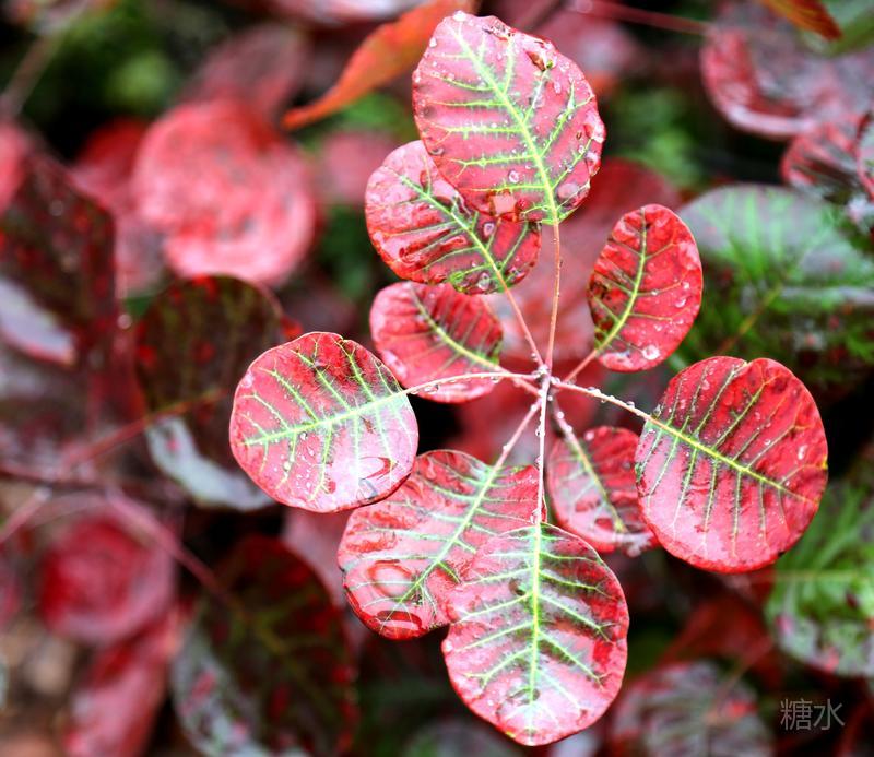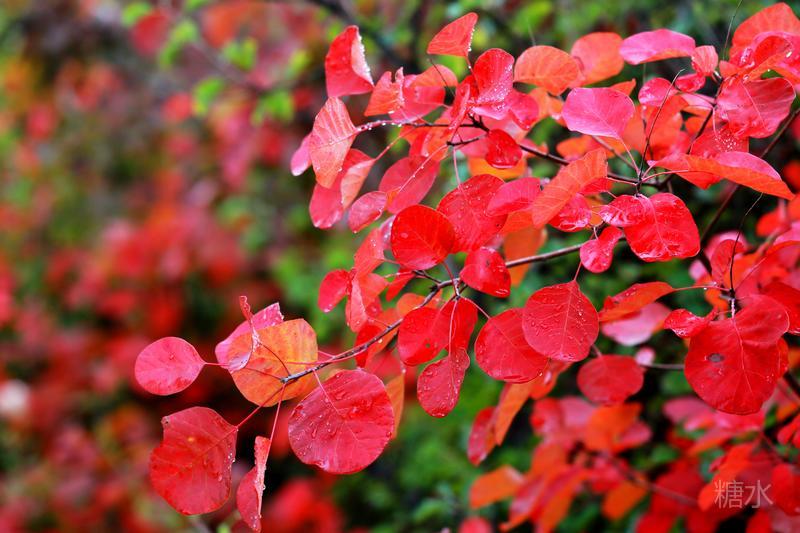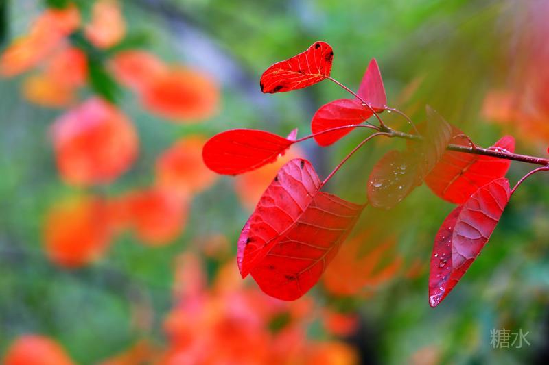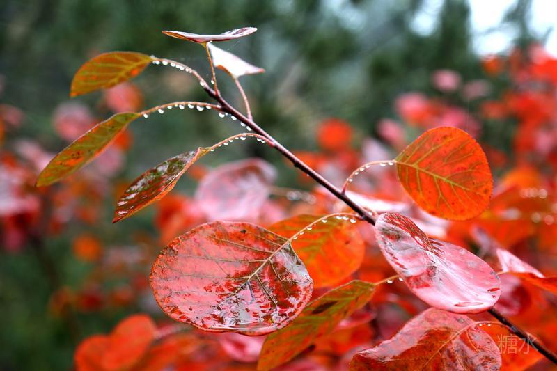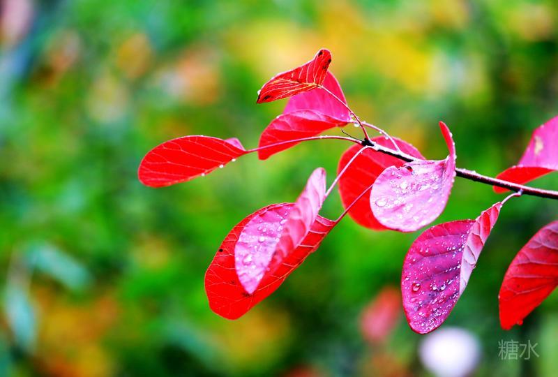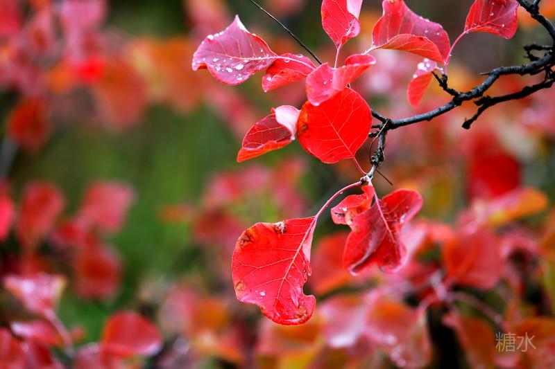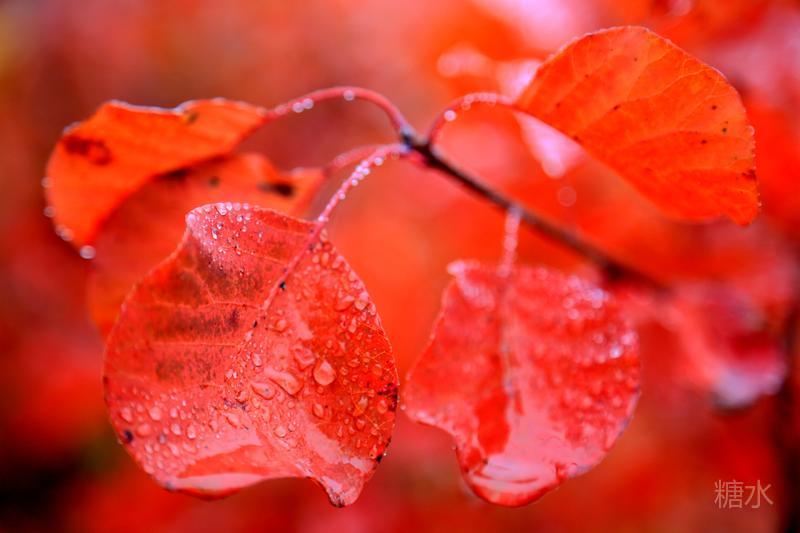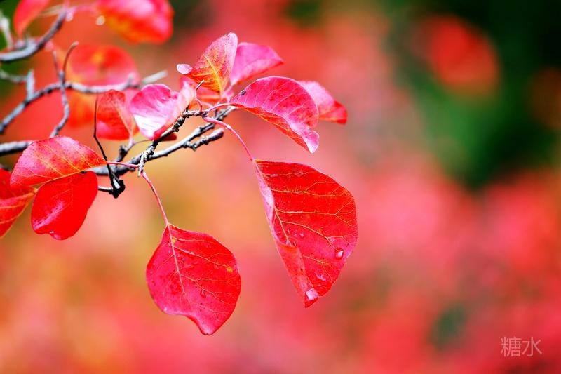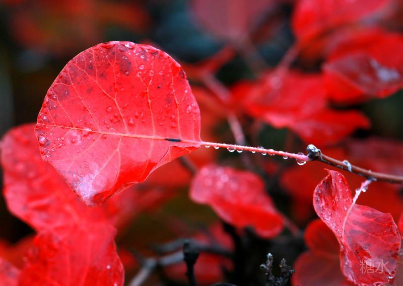 雨润红叶,娇艳欲滴