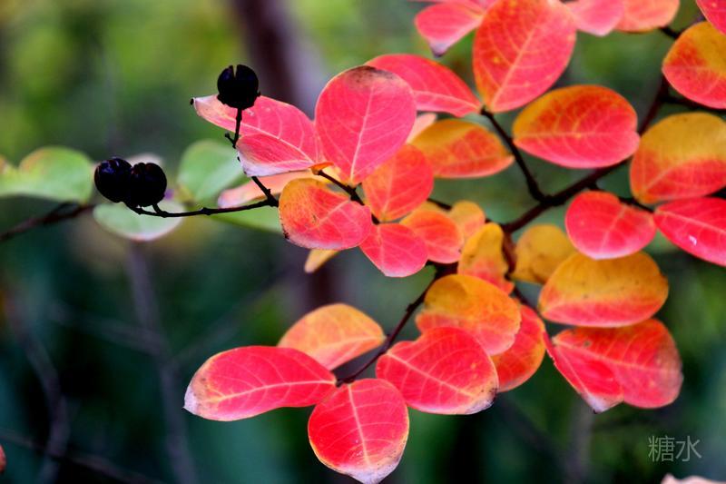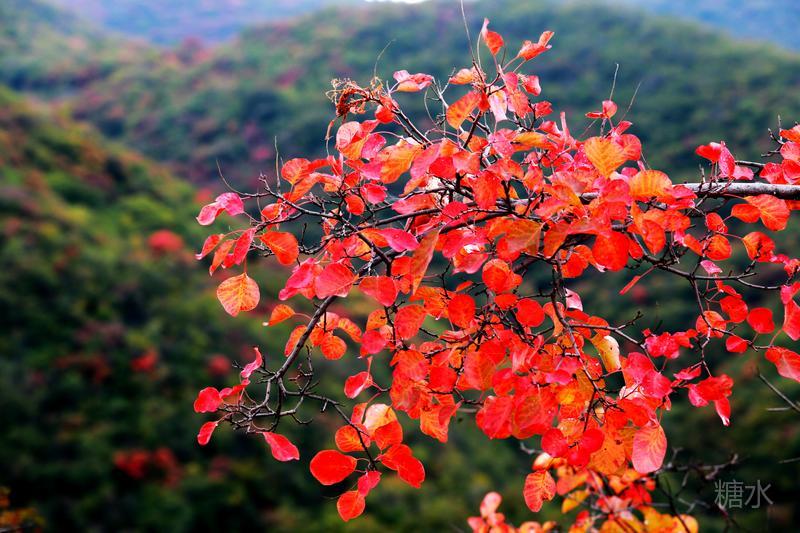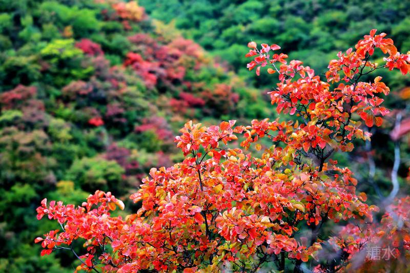 红叶碧水,交相辉映。