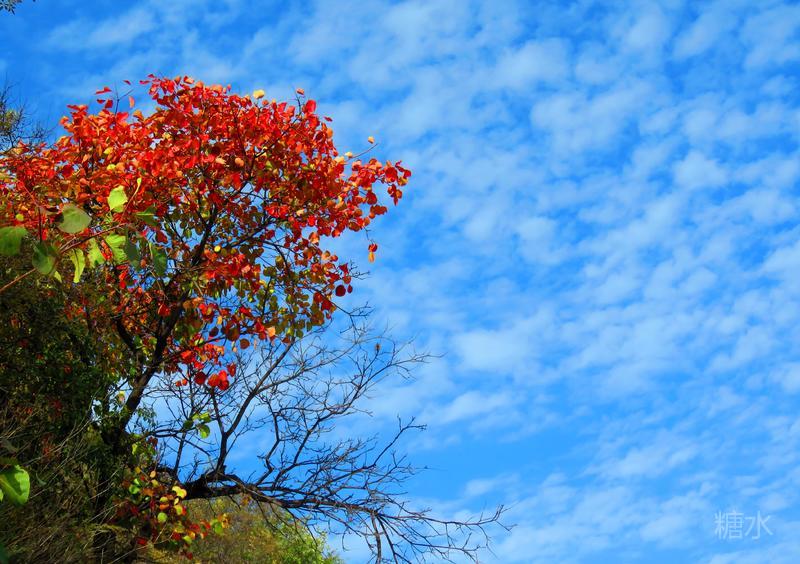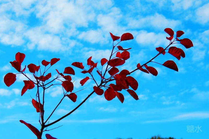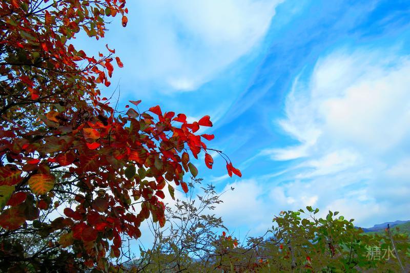 蓝天白云,红叶缭绕