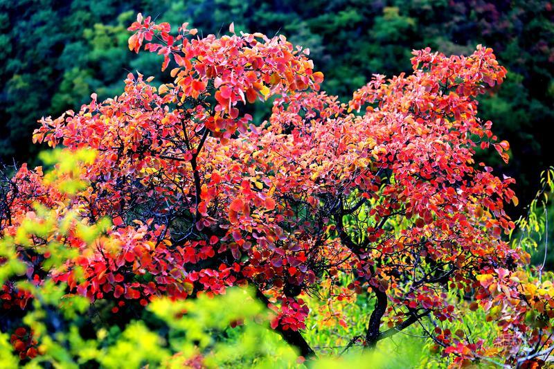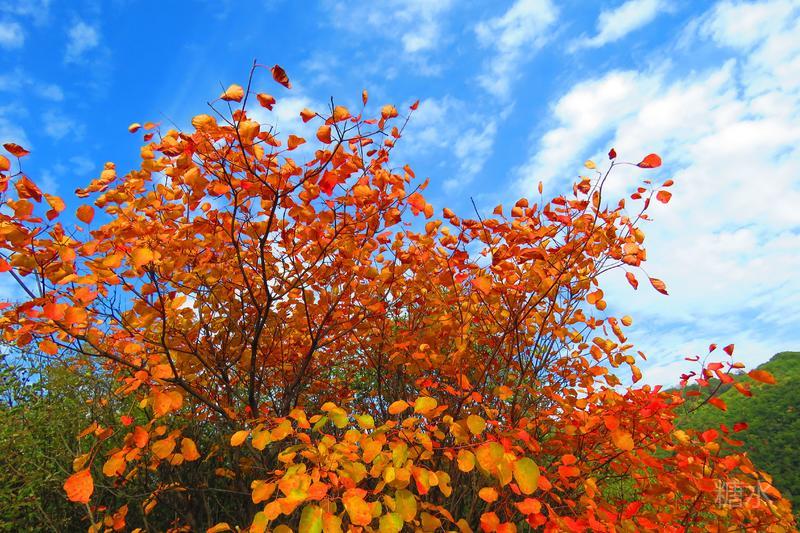 金秋十月,五彩缤纷,秋天是去观赏红叶的最好季节,观红叶漫山,赏落叶铺地,是秋季的一大乐事。绵延起伏的山脉层林尽染,万山红遍,金黄、火红的树叶在松柏的衬托下璀璨夺目。你走进大河庙,仿佛走进一个给秋天染色的颜料桶中,处处都是惊艳的美丽。 秋风瑟瑟掠过树梢,秋雨沥沥滴到拂晓,秋叶飞舞染红天地,秋色斑斓尽显风骚。