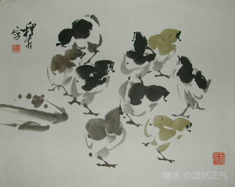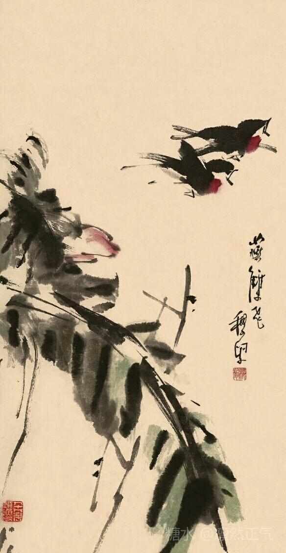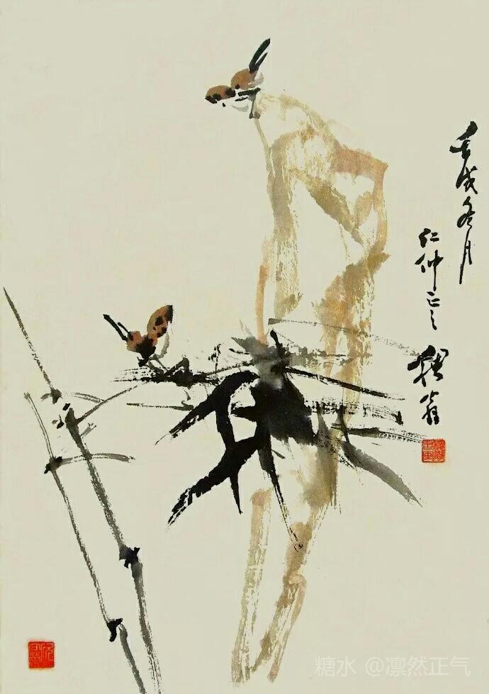 黄稷堂先生平时惯用左手作画,右手写字,草书之画,减笔出之。虫鱼、禽鸟、山水、人物皆翛然超俗,画面清新,兼善诗词、文赋,篆刻精能,与弘一法师相往返,洎为君子之交,并草书潇舒,别有情致。