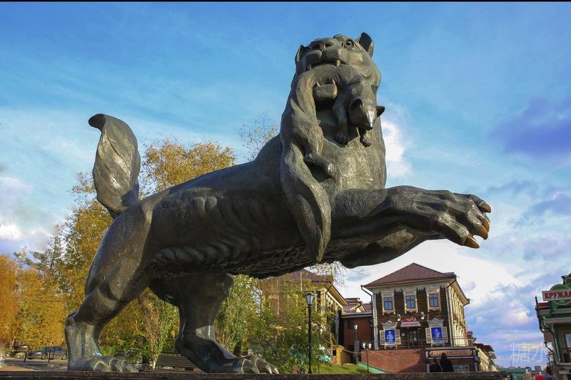 伊尔库茨克市的标志:老虎叼着紫貂,象征着勇敢与繁荣。