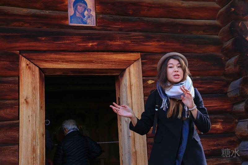 在塔利茨露天木制民族博物馆,声情并茂为我们讲解的俄罗斯导游敏丽。