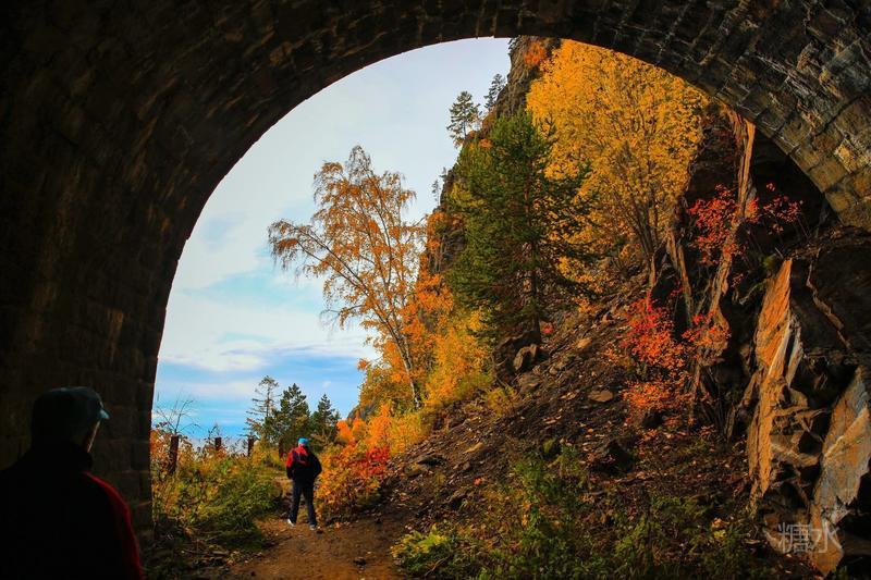 乘坐环湖小火车,沿湖欣赏贝加尔湖湖畔的秀丽风光。