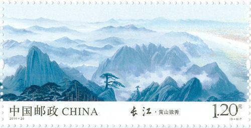 中国邮政于2014年9月13日发行《长江》特种邮票1套9枚。其中第6枚图案为“黄山独秀”:山峦起伏、云海氤氲,莲花峰如出水芙蓉仰天怒放,天都峰似倚天长剑直插苍穹,苍劲挺拨的迎客松与纤巧秀美的梦笔生花遥相呼应