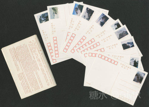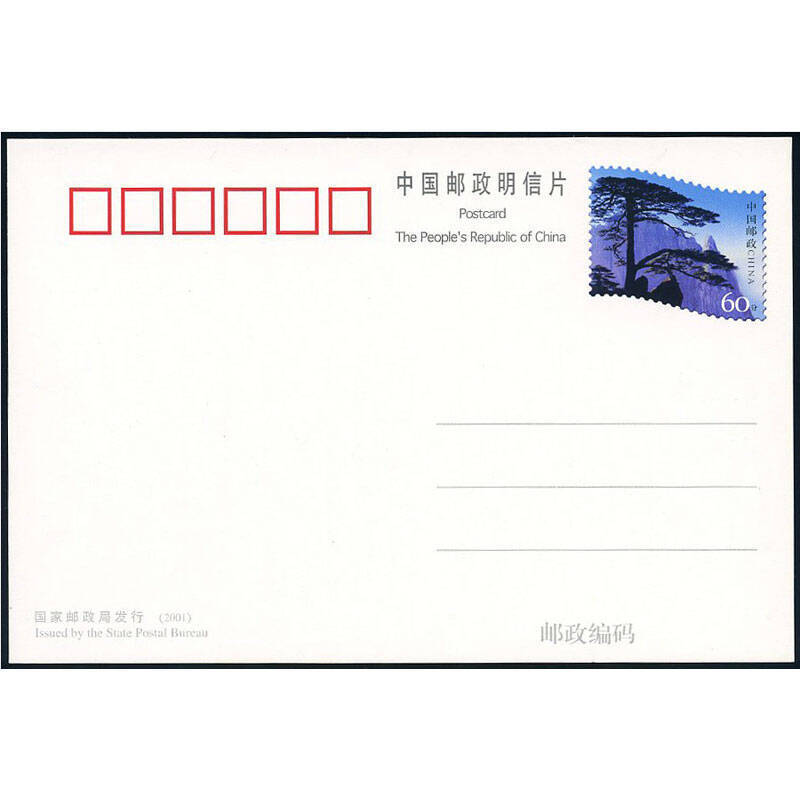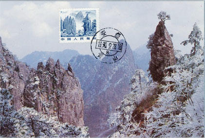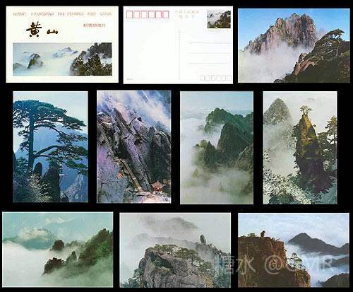 邮电部于1986年5月1日发行《黄山》风光邮资明信片,该套明信片分为A、B两组,每组10枚。每张明信片的邮票图案和明信片背面图案相同,分别为:迎客松、天门支梯、梦笔生花、九龙峰、石笋雨霁、莲花峰、双剪峰、清凉台、石猴观海、飞来石