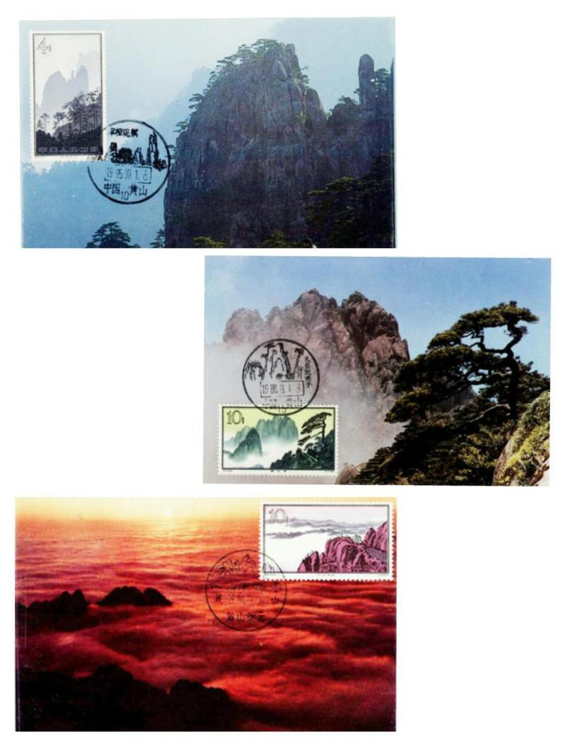 1963年10月15日我国发行《黄山风景》特种邮票,全套16枚。这套邮票采用影写版和雕刻版套印,将黄山有代表性的16个景观绘入方寸之中,成为一套最受欢迎的风光邮票,1980年被全国广大集邮爱好者评为建国三十年最佳邮票