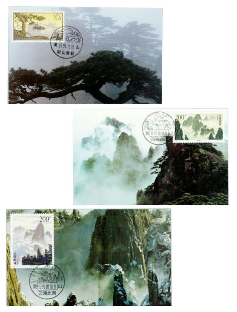 1994年9月10日,邮电部第二次发行《黄山》风光邮资明信片,此次发行模式更改为由地方自筹资金经批准后印刷发行。图案分别为黄山观云、黄山飞来石、黄山北海宾馆、黄山石猴观海、黄山落日送客、黄山群山青松、黄山天上玉屏、黄山雪松、黄山万壑松云、黄山仙女峰