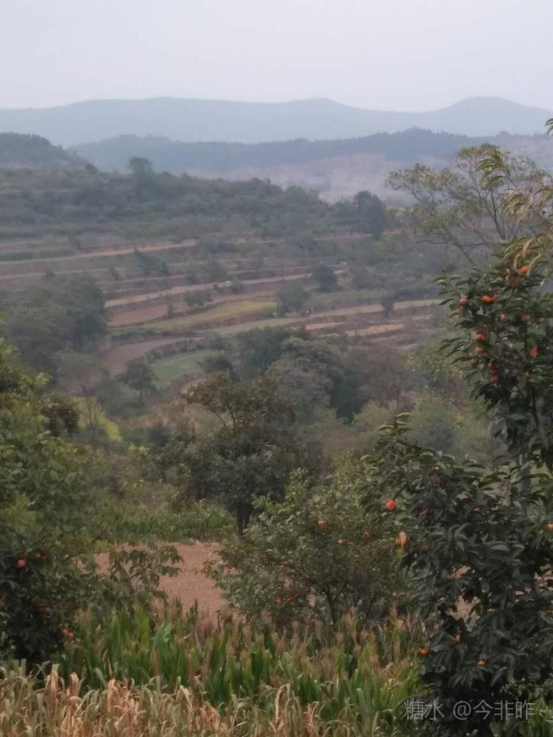 梯田边,路边散落着零星的柿子树,就是当地人制作柿饼的来源,没有刻意的大规模栽植,成就了汉高城柿饼的高品质!