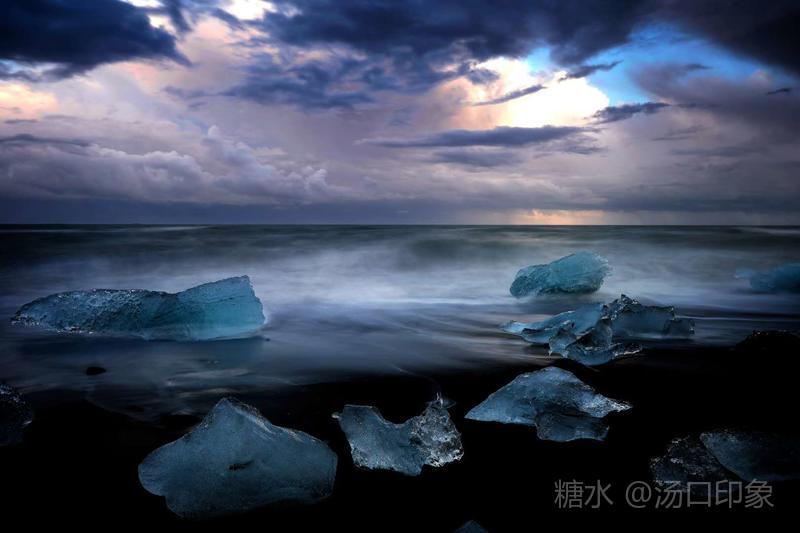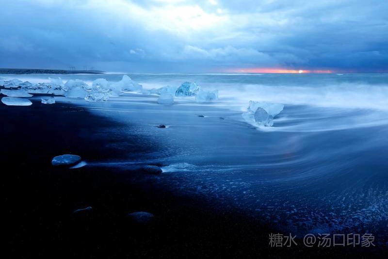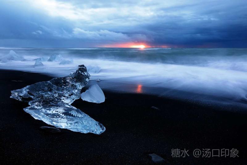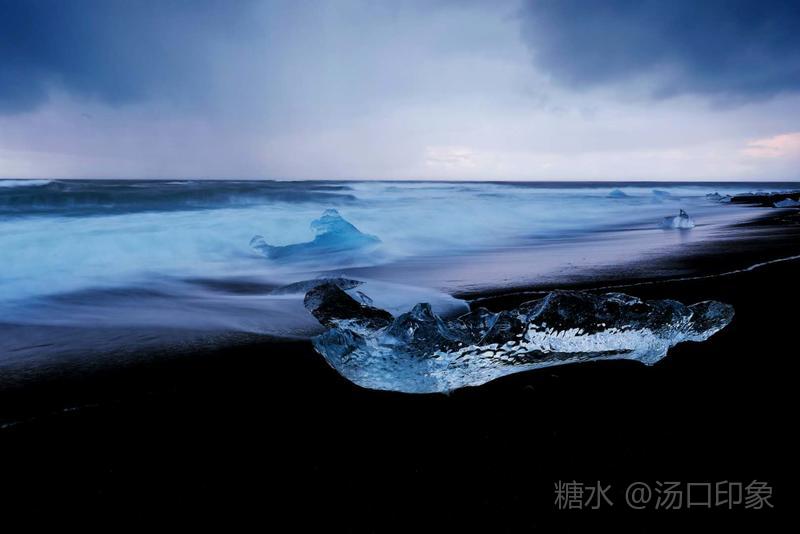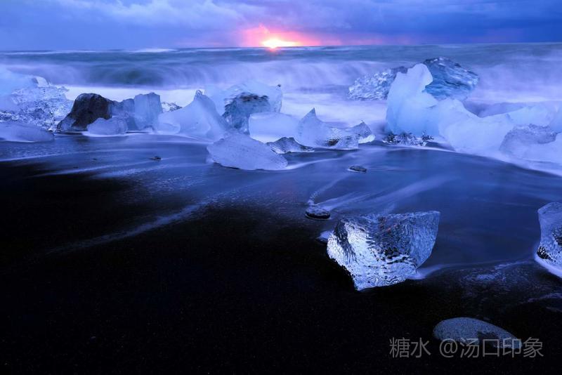 冰岛的冰是蓝色的。蓝的像海,蓝的像天,冰拥着海,在晨曦的阳光下,散发出幽幽的蓝光,小伙伴们拍的如醉如痴,以至于忘记了躲闪汹涌的海浪,索性双脚浸泡在海水里,尽兴的三秒五秒十秒十五秒的比谁拉的丝更摆(小伙伴们对慢门拍摄海浪冲刷黑沙滩的一种戏称),玩的不矣乐乎!