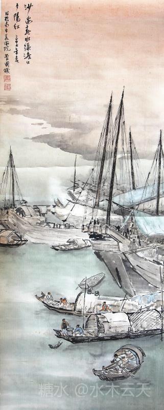 管国机作品~渡口夕阳 1948年