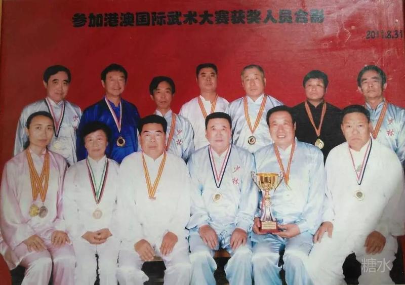 2011年,赤峰参加港澳国际武术大赛获奖人员合影,一排左四为著名老拳手王世伦。