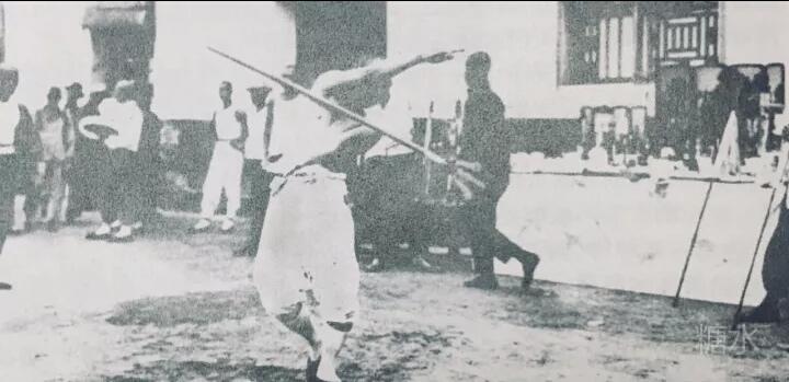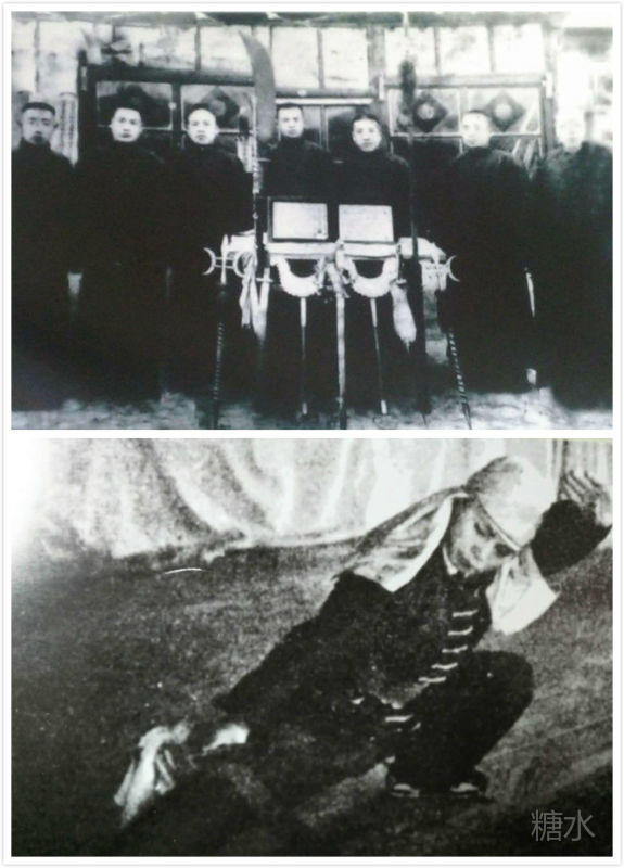 上图为奉天振远镖局赤峰分号拳师合影,下图为赤峰镖局拳师"亮镖会"武术表演。
