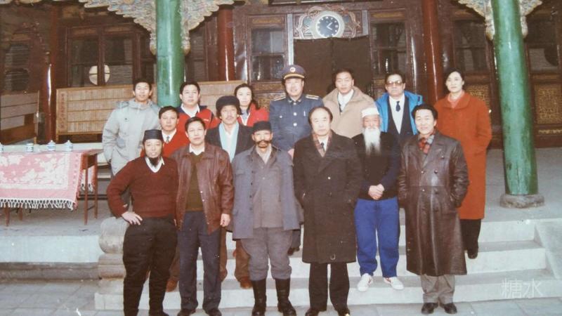 自治区"全国武术之乡"初评组,考察清真北寺穆斯林武术社合影,前三为回族著名老拳师李忠旺。