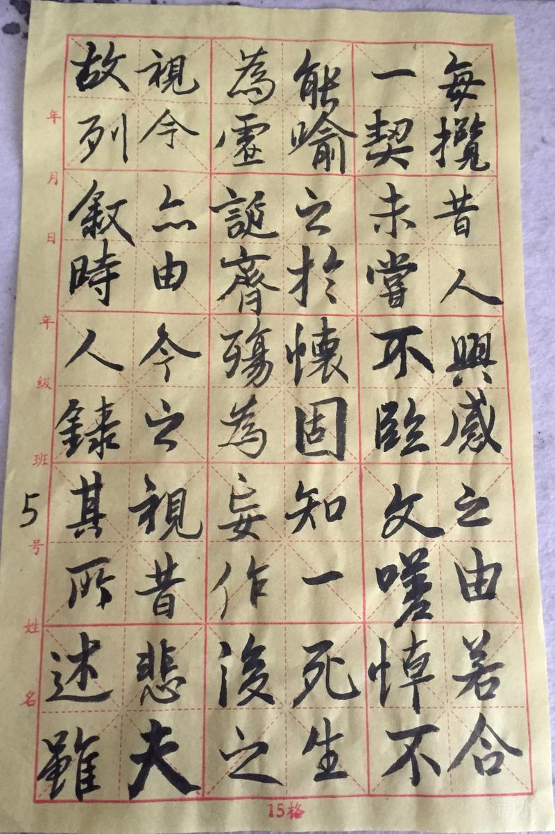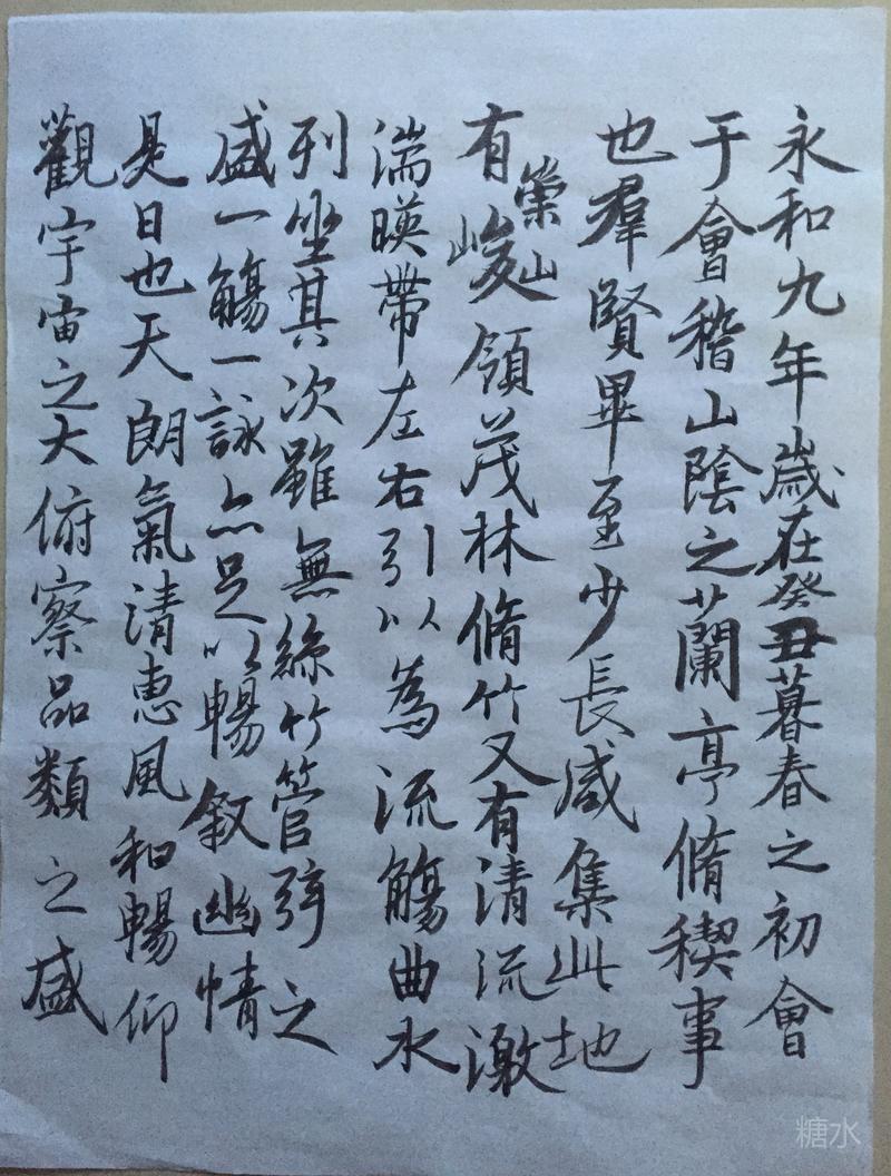 学习写毛笔字已有近10个月,期间间断中经常学王羲之书法多些,但长进不大,现把近两日练习王羲之《兰亭序》拍下,望爱好书法的朋友们多多指教,一定虚心学习。 2017年10月30日