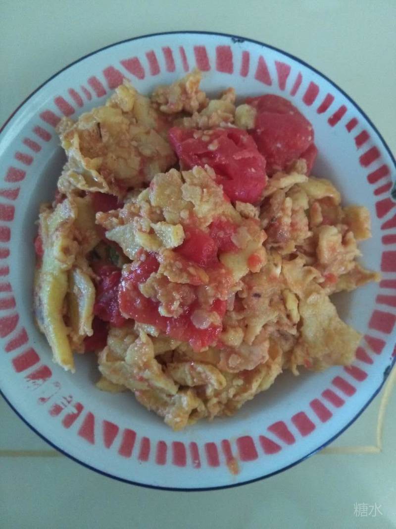 (十一)西红柿炒茄块 主料:西红柿两个、茄子两个、鸡蛋一个或蛋请两个、植物油、葱、姜糖。 做法:西红柿沸水烫,去皮和蒂,切块备用。茄子削皮,切成棱形块,煮熟,捞出备用。用油炒好鸡蛋,铲出备用。接着把西红柿放进去,煸炒一会,再把茄子放进去,略炒。最后把炒好的鸡蛋加进去,翻炒即成。为增口感,可适量洒点姜糖。 注:可加细粉。茄子可换西葫芦等。