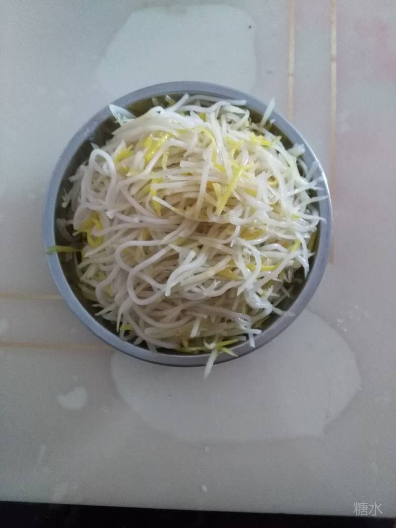 (十)二丝拌粉条 主料:粗土豆丝、胡萝卜丝、细粉、植物油、葱、芝麻面、醋。 做法:分别将土豆丝、胡萝卜丝用温水泡洗,然后再用滚水焯熟,捞出备用。做细粉尽量不加矾,或适量。然后锅底放适量油,加热,放葱,接着将二丝及粉条放进去搅拌热,停火。再把芝麻面和醋洒进去,稍作搅拌,即成。 优点:胡萝卜中有丰富的维生素A,可有效保护视力。土豆去掉大部分钾。 注:可将胡萝卜丝换成白萝卜丝、水萝卜丝、西葫芦丝、黄瓜丝、丝瓜丝等。瓜类最适合肾炎患者食用,不过要擦成比土豆更粗的丝。