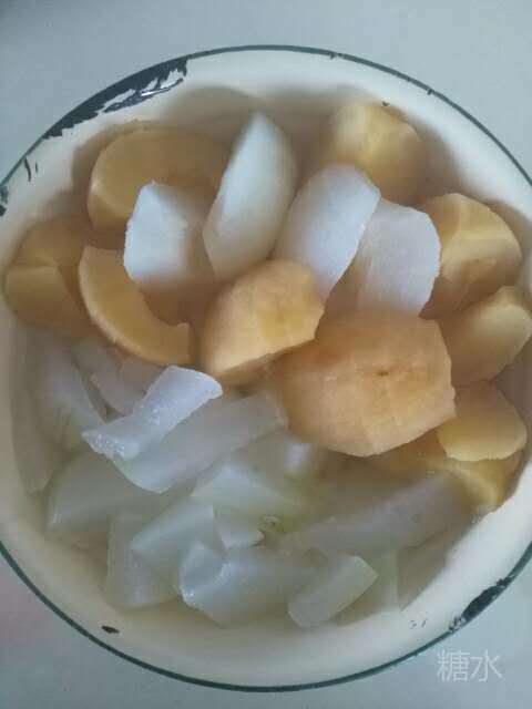 (六)冬瓜、梨、苹果蒸沙拉 主料:冬瓜、梨、苹果、酸牛奶。 做法:将冬瓜、梨、苹果分别去皮,冬瓜挖籽留瓤,梨和苹果去籽和籽中心部分,然后分别切成块,放碟子里蒸熟即可。 功用:冬瓜利尿消肿,梨止咳润肺养阴,苹果性平,营养丰富,三强联合,可常吃。为口感好,可浇酸牛奶、蜂蜜(冬瓜、梨、蜂蜜都是无脂食品)。 注意:肾炎患者不宜喝菜汤、肉汤等,原因是汤里嘌呤最多,增尿酸,但冬瓜、梨汤喝上利大于弊。