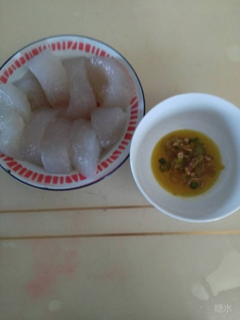 (九)凉粉 材料:粉面、温水 做法:取粉面一大勺,用一小碗温水稀释成稀汤备用(不能用冷水,也不能用开水。冷水化不开颗粒,开水会弄成粉芡)。然后在铁锅内放一小碗半水,烧滚,将粉面汤倒进去,用木铲反复翻搅,即成。准备一瓷盘,趁热将糊状体均匀抹在盘内,待冷后剥出,弄成卷状,切好,蘸汤即吃。 优点:和粉条相比,无需加白矾,白矾伤脏器。夏天吃着凉爽。对肾炎患者有利,可以和面皮媲美。 注:做汤时最好用点水萝卜丝或黄瓜丝。