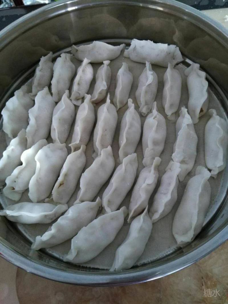 (八)蒸玻璃饺(即粉面饺子) 原料:怀子白(或白菜、胡萝卜丝、白萝卜丝、土豆丝、西葫芦丝、苦菜、黄瓜丝任选一种)、猪黑肉馅(或炒鸡蛋馅、鸡鸭肉馅)、木耳、葱、蒜、素油、花椒粉等。 做法:将怀子白煮熟切碎备用。将肉馅尽量焯一下,去嘌呤。木耳先泡后焯切碎备用。然后把菜、肉及调味加进去,搅拌均匀。用温水和好粉面,即可包。现蒸现吃,冷了发僵,不好吃。 功效:怀子白里有花青素,所含维C量是大白菜的一倍以上,含叶酸,治贫血。猪肉养阴补血利肺。粉面蛋白极少,三者搭配对提高血红蛋白数量有辅助作用。 注:吃粉面饺子比吃粉条好,原因是压粉条必须加白矾(白矾中有微毒,长期吃伤脑肾)。而粉面饺子不用矾,根据试验:做凉粉根本不用加矾。