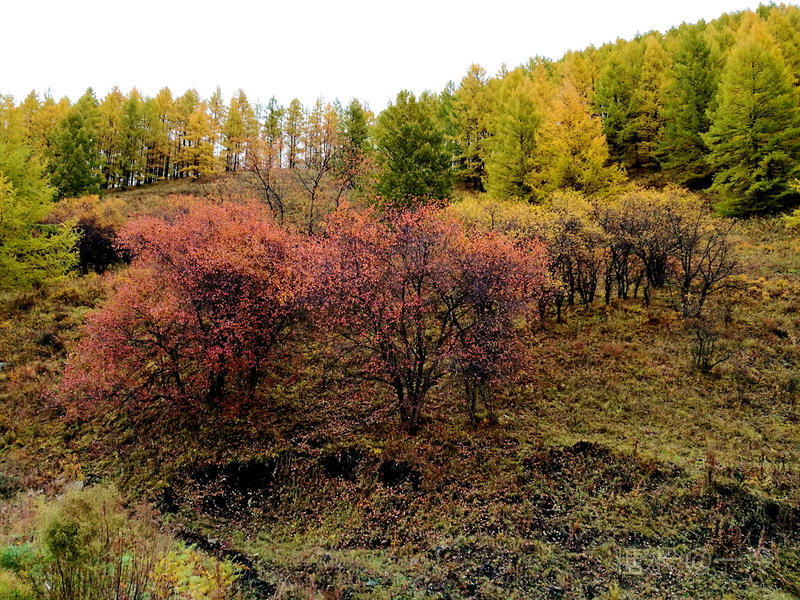 在中国东北地图的鸡冠处 有一道逶迤五千里的绿色脊梁 那就是著名的大兴安岭 每当九月中旬时节 秋天的信息随风传递 浓郁的秋色就染红了鸡冠 让我们来此倾情感受 中国最早的秋色