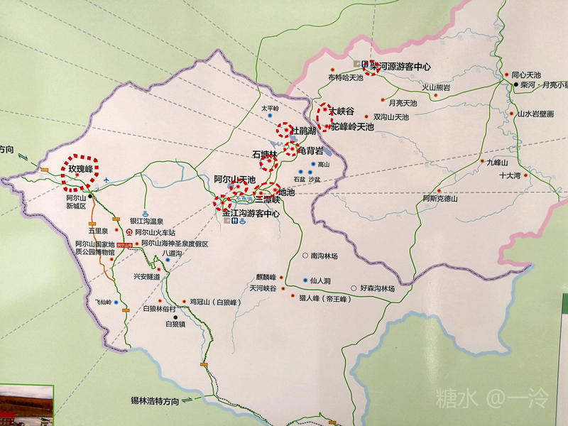 阿尔山国家森林公园地处大兴安岭西南麓,这里的矿泉资源得天独厚,举世闻名。怪石嶙峋的火山熔岩地貌,由于喷发、壅塞及水流切割,造成一系列火山锥、熔岩湖和熔岩盆地,形成特殊的地貌景观。此行由于时间所限未能逐一寻访,期待着将来能够再次巡游。