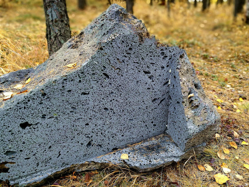 满沟满壑的黑石头都是岩浆形成,从被切开的石块可见,剖面上密布气孔,许多小型浮石比重低于水,可漂浮在水面之上。