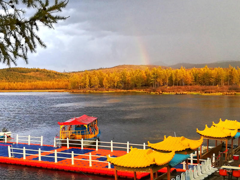 乌苏浪子湖水美草香,有“大兴安岭小江南”之美誉。春夏之际,清晨的阳光射进湖区,湖面上将升腾起浓密的晨雾,可惜现已入秋,此景无缘得见。