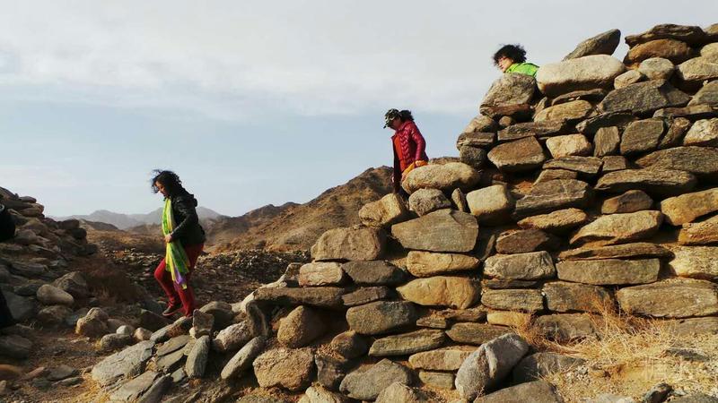 我望着山南这片褐色戈壁,而今面对这段历史时我才豁然明白,当时并非下意识而是有意识,但我肯定自己的目光如戈壁般茫然。同为女人,我感到王昭君和‘鸡鹿塞’女郎一定也曾无数次如我这样,目光茫然地从漫无边际的褐色戈壁掠过,而后,倏地停滯于一个盲点。