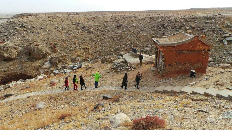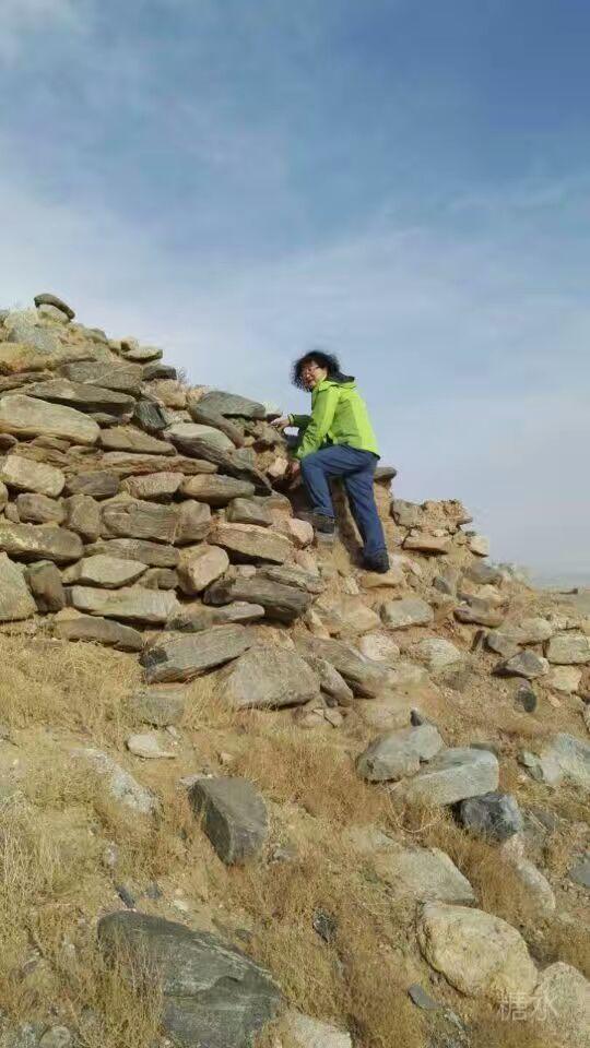 当年我们经常会骑自行车游走阴山脚下,偶尔会碰到一个老妇人,蜷缩着脖子和背,穿黑衣,左边放根长木棍,右边是个带盖小桶,已经磕的坑坑洼洼,不用猜,是要饭用的,有人向她挥手,她也会举手回应。她日出而行,日落而归,所有人都说‘鸡鹿塞’女郎神志不清,但我无法证实神志不清具有超强的衘寒功能,四十年的寒夜蜷曲在半山腰巨石下那个仅可容一人之身的洞窟而不被冻死。这确实是非物理非自然非我们能解密的微妙玄机。其间有牧民接她去嘎查,家人两次接她回山东老家,但她总是绝决的一个人又摸回到‘鸡鹿塞’,继续着那种比四川亚青寺修行还要凄苦一百倍的悲凉生活。我曾想象在漫长的冬夜里,‘鸡鹿塞’女郎也许会蜷缩在巨石下一动不动,而满天星光的夏夜呢?睡眠以外的时光作何安排?