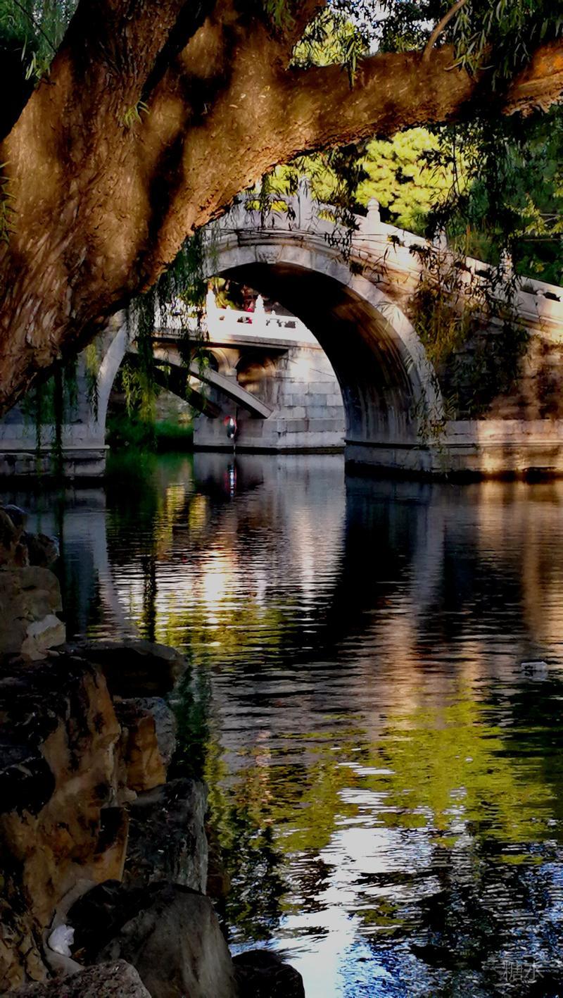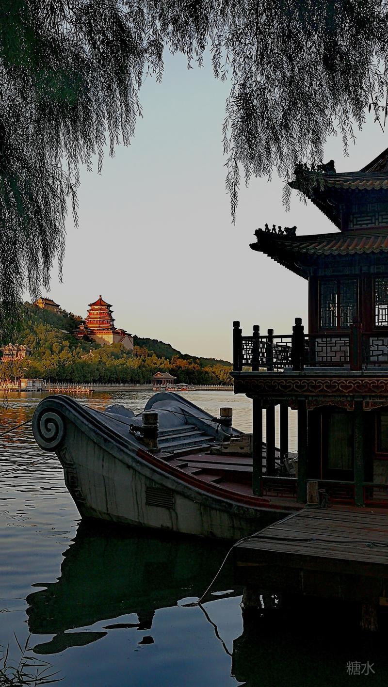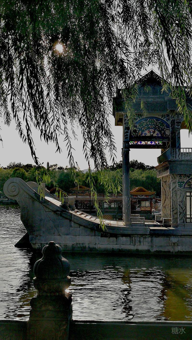 坐在知春亭中 透过疏密的柳帘四望 碧绿的昆明湖水 远接横亘绵延的西山 葱翠的万寿山峦 掩映着溢彩流光的楼阁 诗意的翠堤画意 连缀着六桥靓影 呼应着在碧波上 悠悠摇荡的石舫