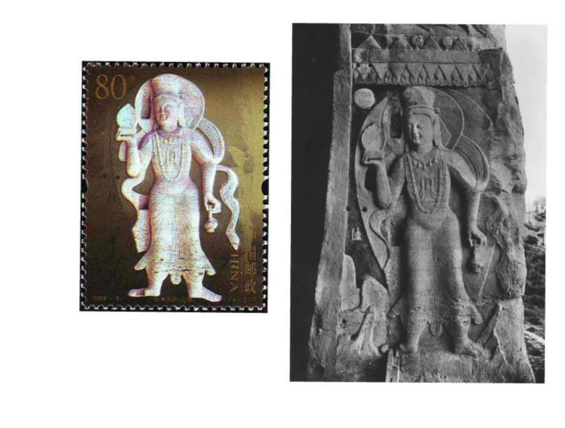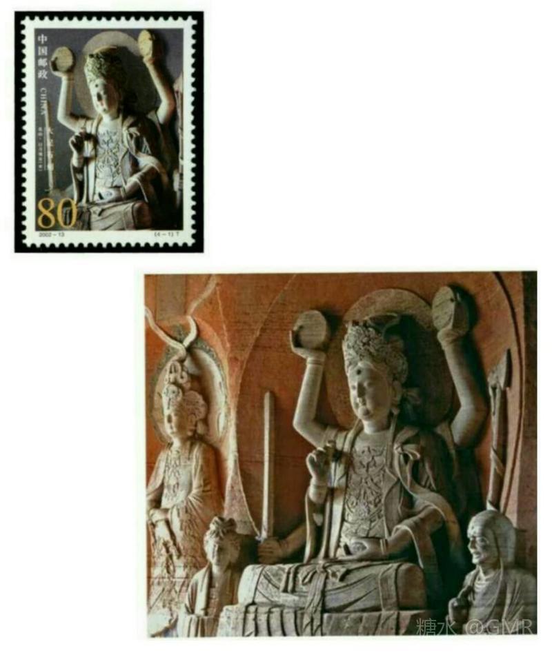 (4-4)《石门山.三皇洞造像》选自大足石门山第10号三皇洞内。邮票图案人物为洞内造像之一