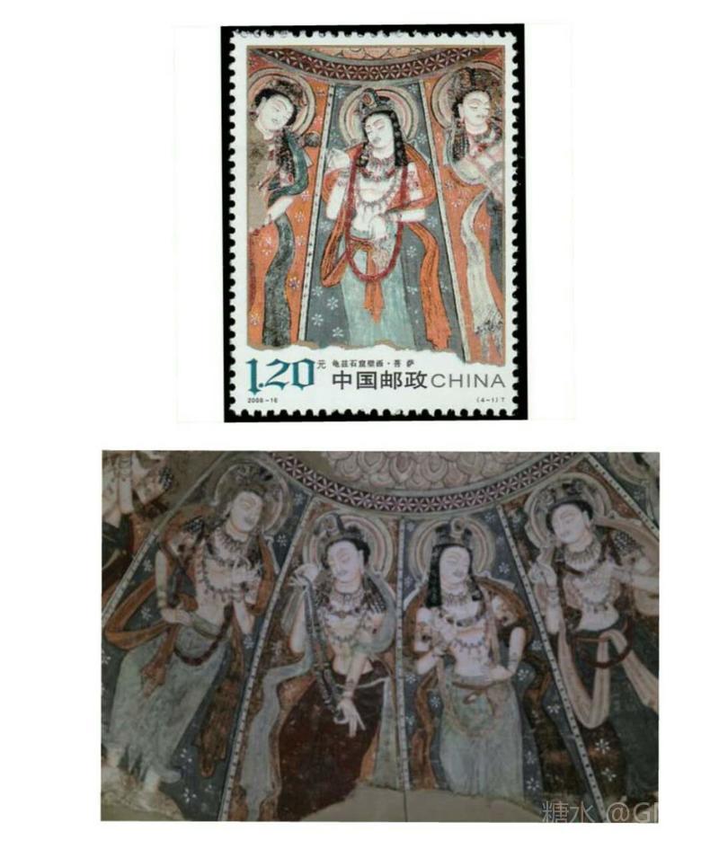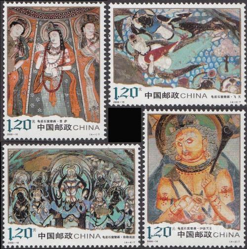 2008年7月6日,为了展示历史悠久的龟兹石窟壁画这一中华民族绘画艺术的奇葩,国家邮政局发行了志编号为2008-16的《龟兹石窟壁画》特种邮票,全套4枚 本套邮票根据照片裁取而成,图案精美,构图巧妙,生动地再现了龟兹石窟艺术的精髓