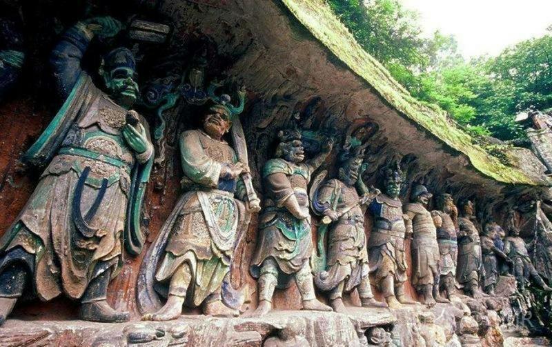 分布在重庆市大足县境内约80余处5万多尊的宗教石刻造像的大足石刻始创于唐永徽元年(公元650年),历经晚唐、五代,盛于两宋,绵延明清。她集中了中国石窟艺术之大成,把石窟艺术推上了一个新的高峰,为中国佛教密宗史增添了新的一页。1999年12月1日大足石刻被列入《世界遗产名录》