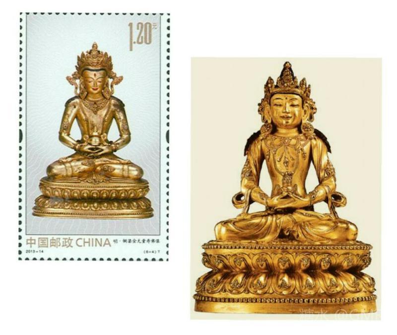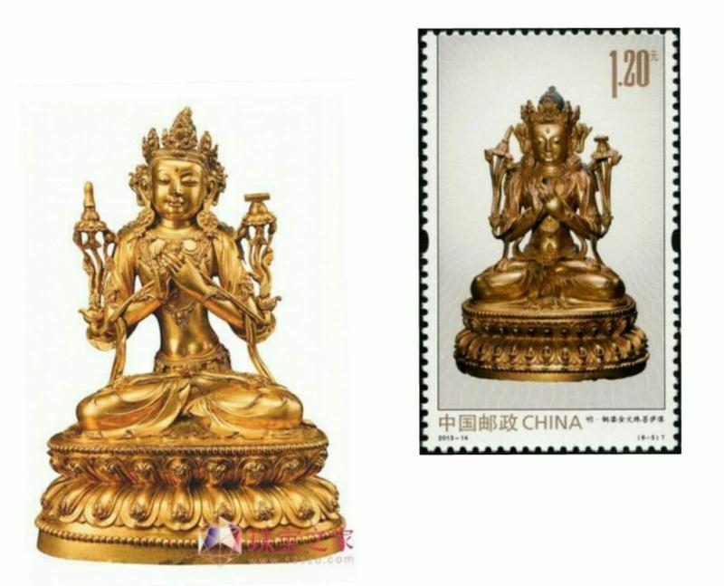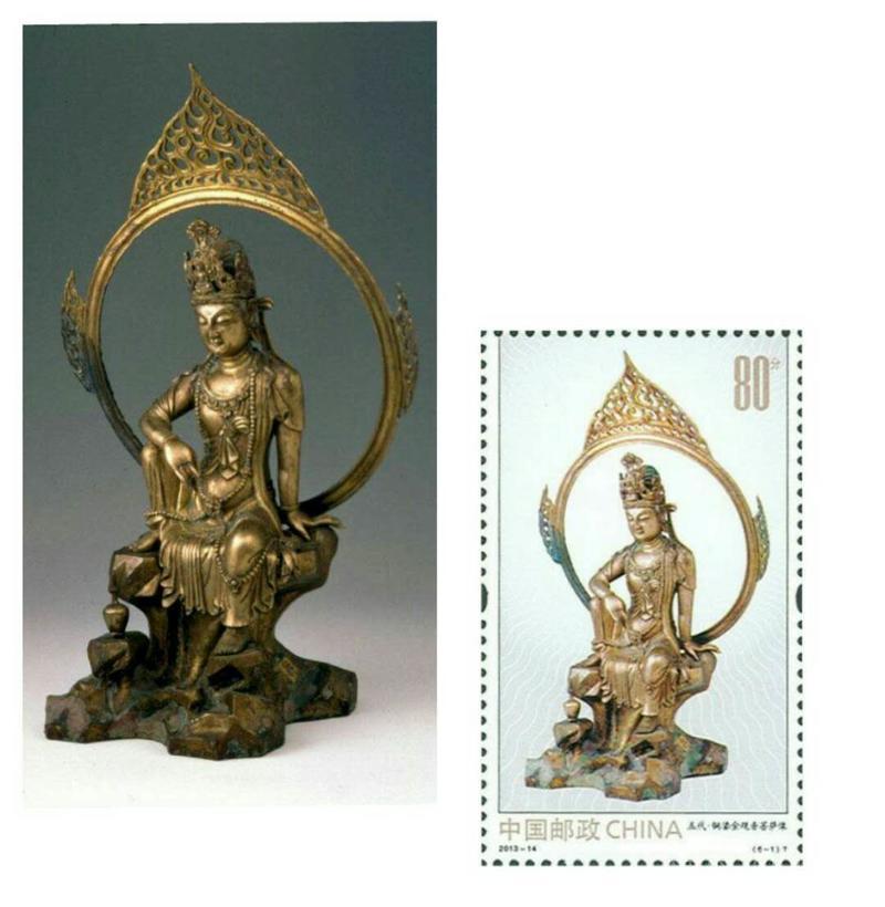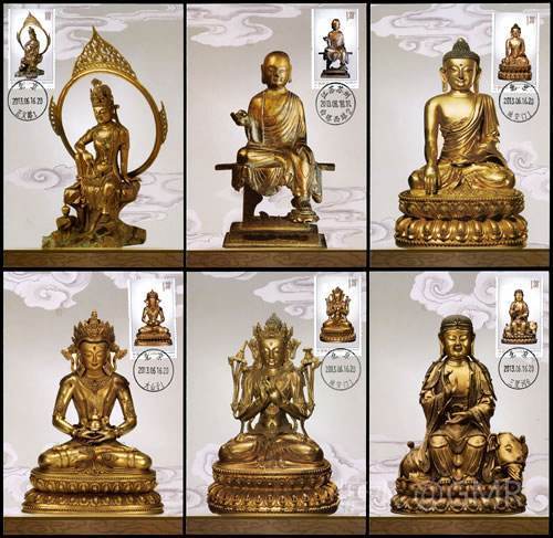 2013年6月16日,为纪念中国佛教协会成立60周年和展示我国灿烂悠久的佛教文化,中国邮政发行了《金铜佛造像》特种邮票,全套6枚;小型张1枚