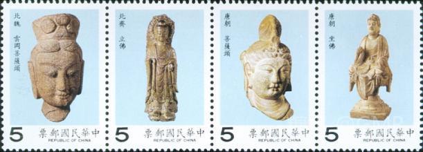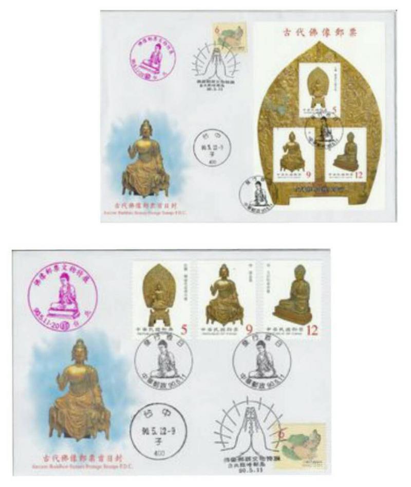 为宣扬中华文化,介绍古代精致艺术品,2001年5月11日,台湾中华邮政发行了《古代佛像邮票》1套3枚及小全张1张
