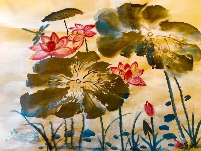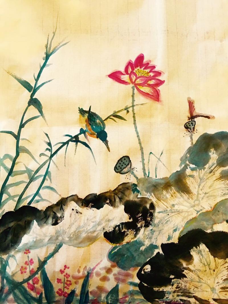 七律 画荷 冰洁玉清 清荷摇曳水中央,墨笔连波画意长。 淡抹仙姿临梦醉, 轻描娇蕊入心香。 翩翩翠叶花青绘,款款红莲胭脂装。 玉透冰清留纸卷,不惊花鸟韵流芳。