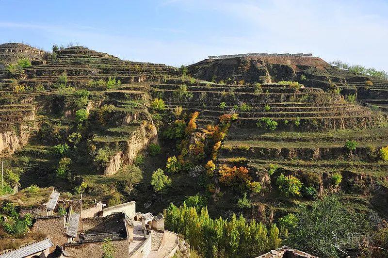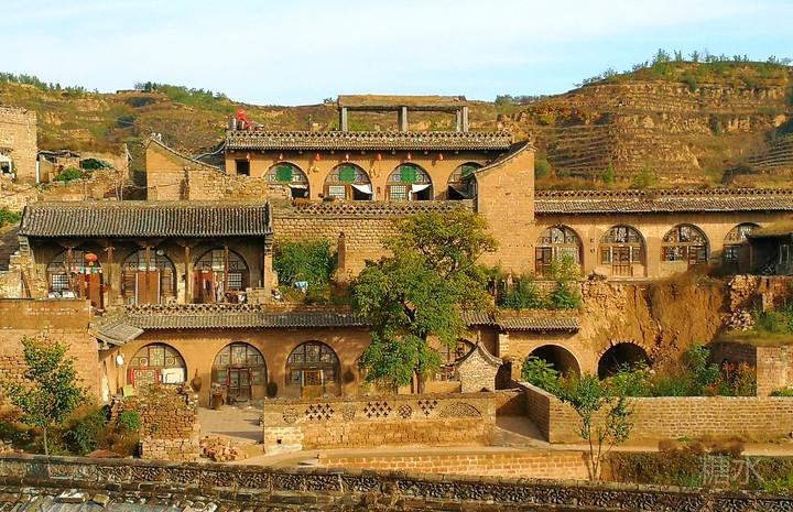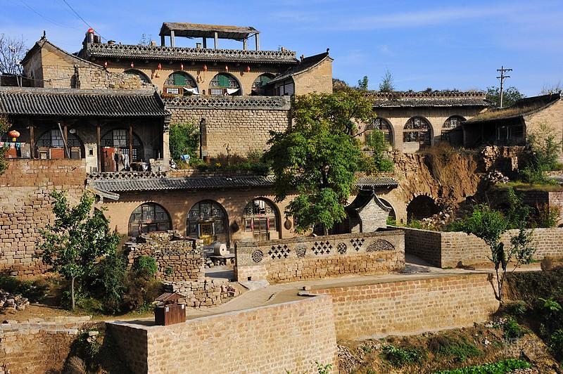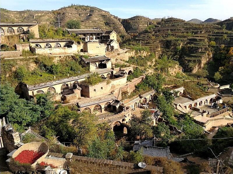 无论是财主家或是农户家,各家各户的窑院沿坡壁呈阶梯状分布,往往上一层庭院的下面就是下一层窑洞的洞顶。一层层的窑洞就这样层次分明、错落有致地层叠在陡坡之上。