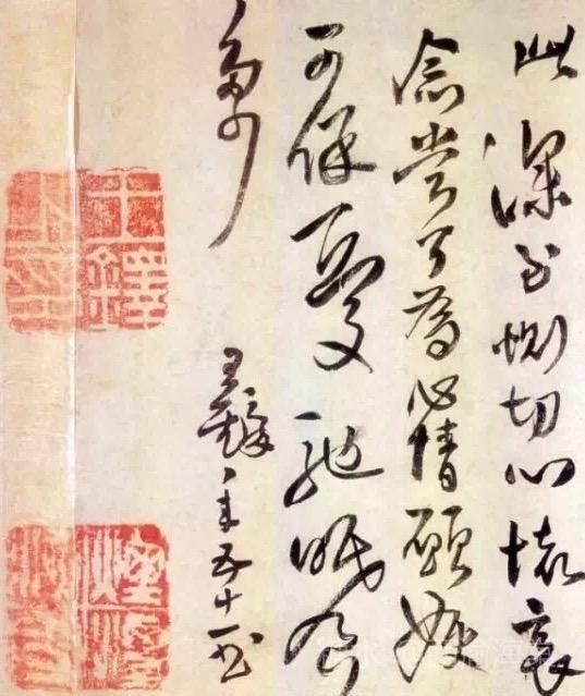 明崇祯十六年癸未(1643),王铎51岁,这是明亡前一年,他写下这卷长约1.7米的《草书临阁帖卷》。可想而知,正值国家危难、个人困苦之时,身为一介书生,只能在困顿之际临帖聊以慰藉,所以不在意文章句读,而凭感觉一任笔墨驰骋地书写下去,将其本不连接的草书结体缠绕相续,以具有屈铁般刚健之气的线条取代圆转挥运连绵不断的笔势,构成其人独特的艺术境地。通卷书法点画雄实,大小不一,字距参差,古朴劲美,以雄强霸悍的笔力、奇诡怪伟的体势、酣畅淋漓的墨彩,表达了大起大落、汹涌激荡的情绪和心境。
