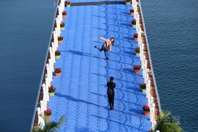 贵州罗旬红水河上建成全球最长漂浮栈道。这个水上栈道由22万多个浮体,安全缆绳151400米,安全围网11550米,总长度3.7公里,综合使用面积IO万平方米,一个巨大花🌸朵图案呈现在碧波荡漾的红水河上,显得蔚为壮观