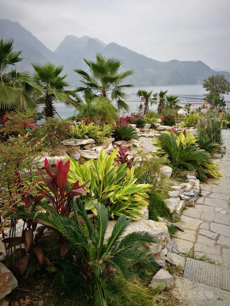 栈道周围的湖岸边,打造了中国唯一的半岛夜光植物公园,:贵州唯①的热带植物园,蕉叶植物园等…。:漂浮栈道和主题景观都安装好炫彩灯带,晚上,闪烁的彩灯与湖水交相辉映,将给景区观赏夜景的游客留下一个美好的记忆。