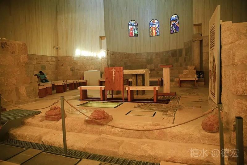 山顶有间教堂,是公元四世纪初期建造。教堂里供奉着大量的马赛克图样,上面镶嵌着狩猎、畜牧耕种和各种鸟兽的图案,是典型的拜占庭马赛克画,这是基督教和犹太教的重要遗迹。