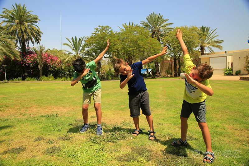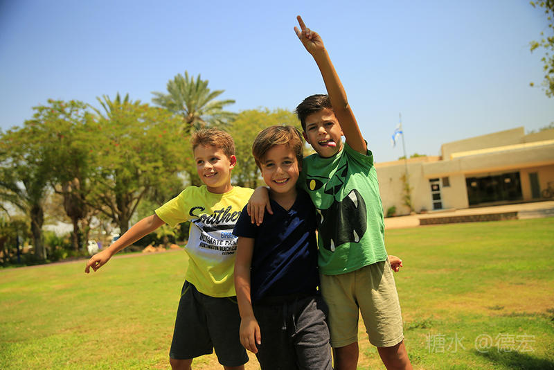 卡里亚的基布兹像个大花园。在这干燥、缺水的地方,能养护这一大片公共绿地,没有一点经济实力是绝对办不到的。 家家庭院都是开放式的。看得出家家户户生活安逸,孩子们快乐无比。